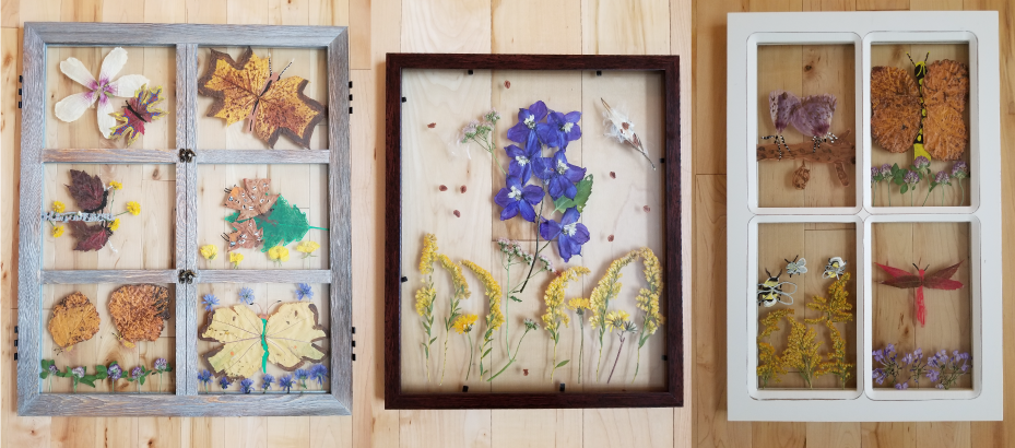 Photos courtesy of Anita Narayan. Top photo: Kedar presenting his art work to Cindy Brown of Smithsonian Gardens. Lower photos: Other art work he has created for a local nature art show in his hometown.