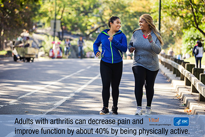 “State officials and community leaders can promote physical activity and disease management educational programs to adults with arthritis through public health departments, parks and recreation agencies, and community and senior centers.” - CDC Vital Signs, Arthritis in America