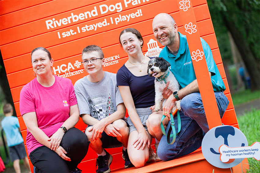 In another exciting development, we’re wagging our tails to announce a new temporary dog park at Riverbend Park. This fantastic amenity was made possible through a generous partnership with HCA Healthcare’s Mission Health. We know how much our four-legged friends (and their owners!) missed having a dedicated space to play off-leash and we are grateful to HCA Healthcare’s Mission Health for helping us make this a reality so quickly. Be sure to check out photos from the grand opening and make a visit with your furry companions!