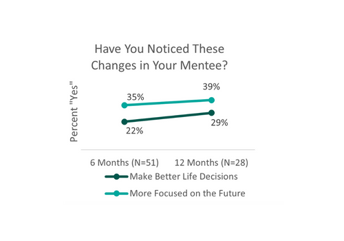 After six months, 61 percent reported their mentee was better able to open up/share emotions compared to when mentoring began; increasing to 71 percent after 12 months.