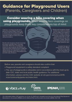 - Consider the type of face covering or mask being worn. Face coverings that tear away easily are the best option for wearing on playgrounds.