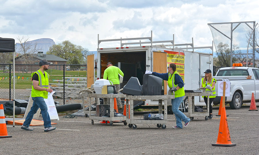 Pictured: City of Grand Junction Parks and Recreation staff recycle electronics at the 2023 South West Arbor Fest. Photo courtesy of Trish Rothwell, City of Grand Junction Parks and Recreation.