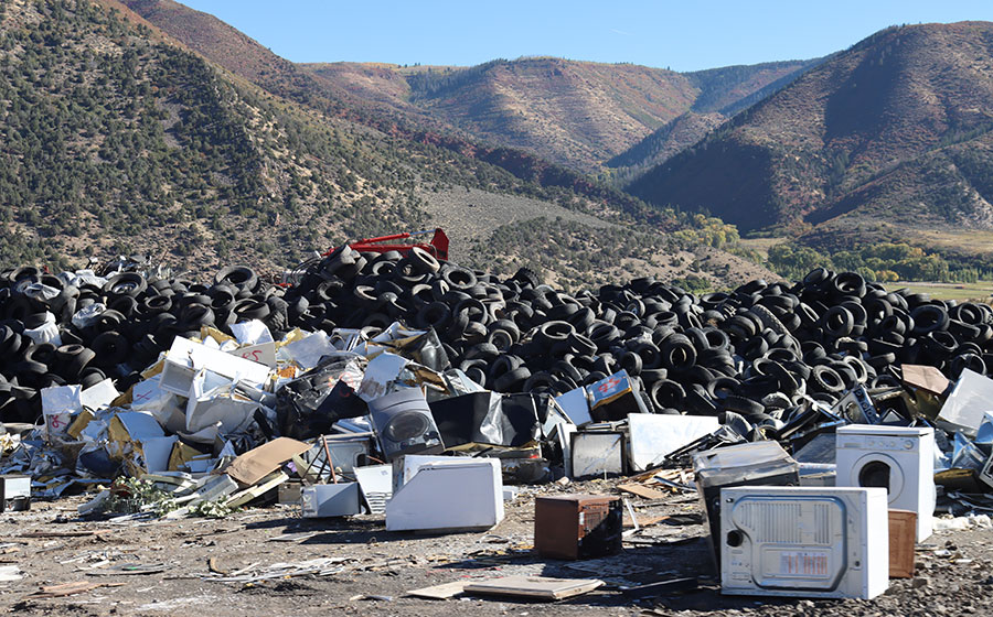 Pictured: Tires and household appliances to be recycled at the Pitkin County Landfill in Aspen. Photo courtesy of Mariela Hale, City of Aspen Communication Department.