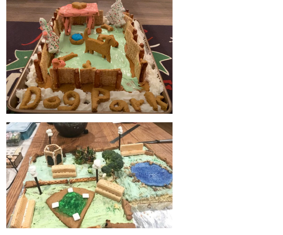 We asked staff to create their version of a park or open space using edible components. They could go traditional gingerbread and candy, savory, or something completely different! The only criteria was the building materials must be edible components (even if not very appetizing — we’re looking at YOU fruitcake lovers — haha). Also, competitors only had two hours to complete their creation and we allowed for children and family to help.