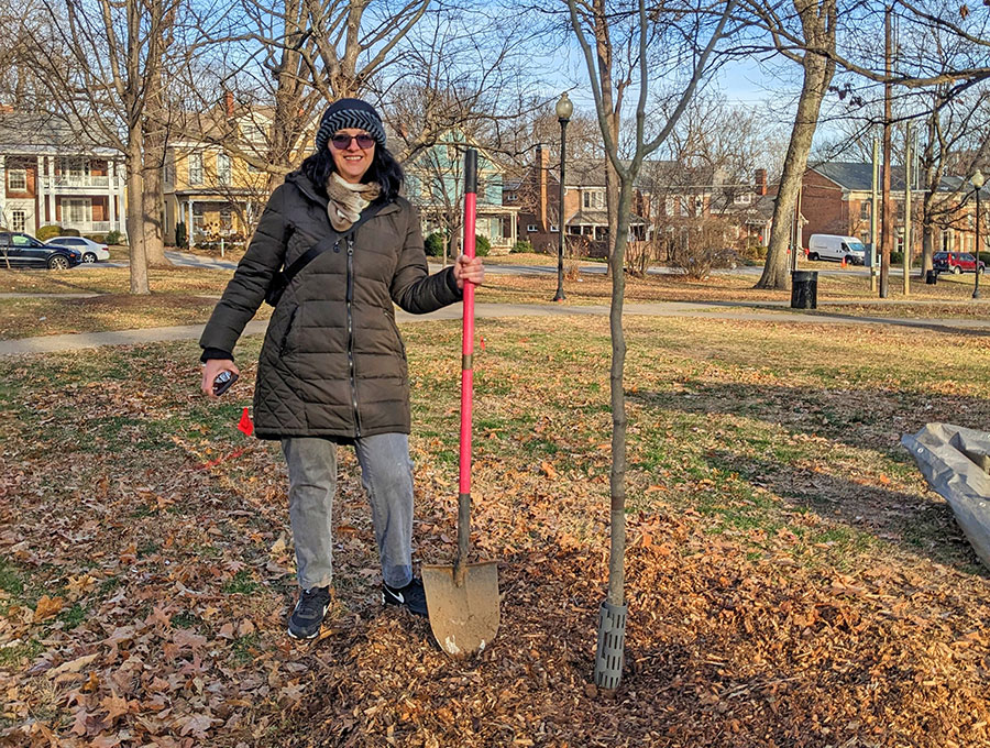 Pictured: A Lexington business owner plants a tree as part of the city's Park and Recreation Month celebration. Photo courtesy of Paul Hooper.
