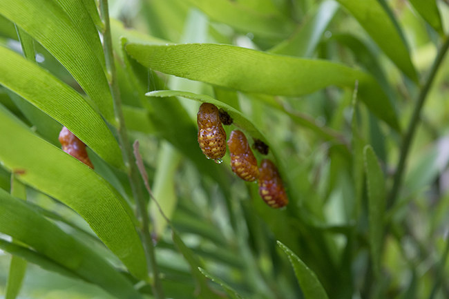 Atala are in chrysalis for about 10 days on coontie plants. Photo courtesy of Dreamstime.