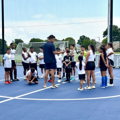 PHOTO: Youths listen to soccer coaches before a scrimmage on a mini pitch operated by the City of New Bedford (Massachusetts) Parks, Recreation and Beaches.