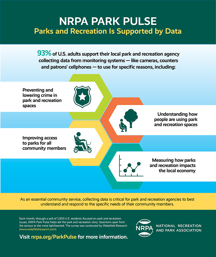 - Nearly two in three (62 percent) U.S. adults support their local park and recreation agency collecting data from monitoring systems to prevent and lower crime in park and recreation spaces