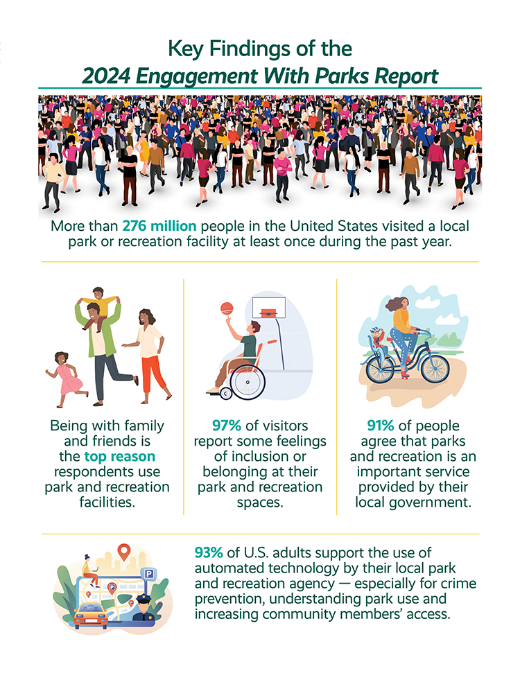 Each year, NRPA conducts a study exploring the public's relationship with their local parks. This study examines the essential nature of local parks and recreation, including how parks play a role in deciding where to live, the number of local parks, trails and other open spaces within easy access to people's homes, and the public's desire for local and state governments to sufficiently fund their local park and recreation agencies. The 2022 Engagement With Parks Report examines the role of parks and recreation in everyday life including the public's desire for the vital services agencies bring to the community such as emergency shelters and youth employment.